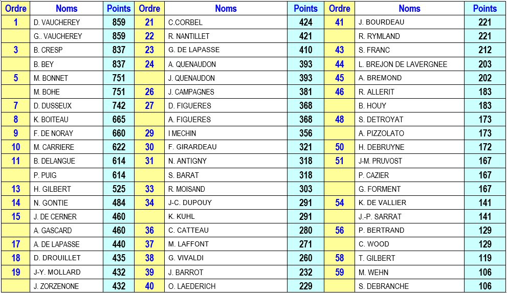 Pour connaître le mode de calcul de ce classement, reportez-vous au mail d’Hervé que tous les participants au tournoi recevront. Prochain tournoi, le dimanche 30 novembre. Inscrivez-vous dès maintenant.