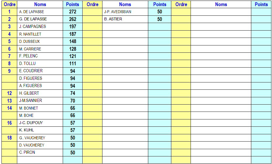 Classement à l'issue du tournoi du dimanche 11 janvier 2026